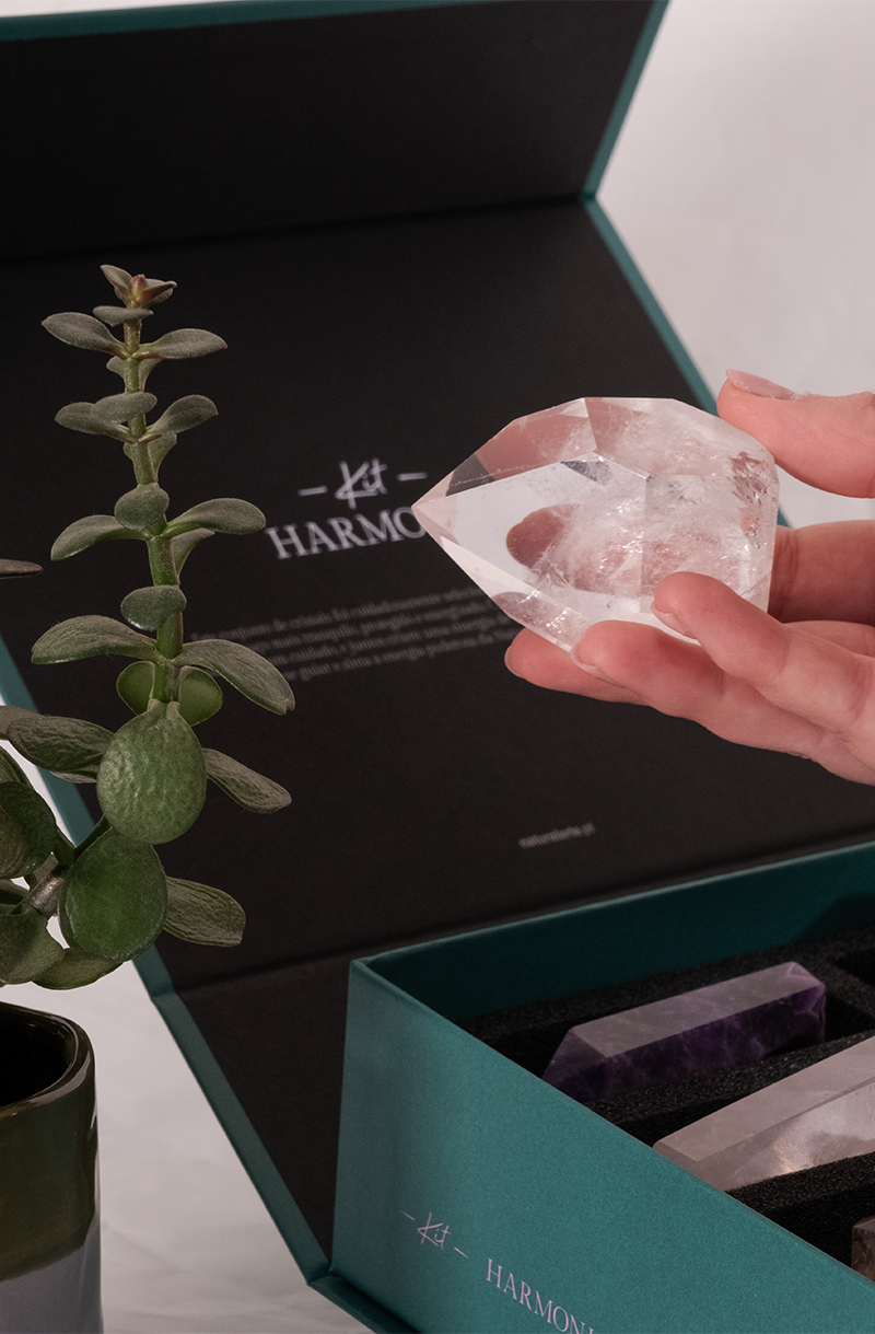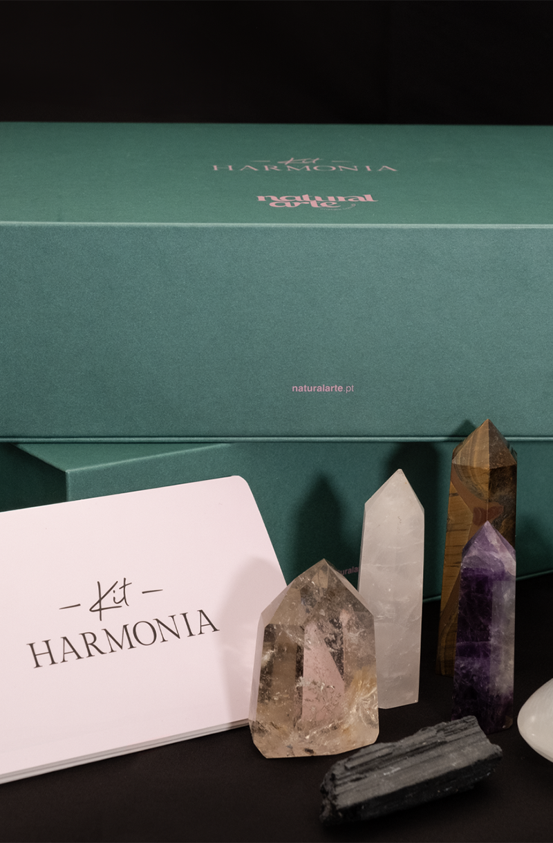 Os cristais incluídos no Kit Harmonia são elementos naturais e podem apresentar pequenas variações de cor, forma ou textura. Cada conjunto é, por isso, único e exclusivo, refletindo a beleza autêntica da natureza.