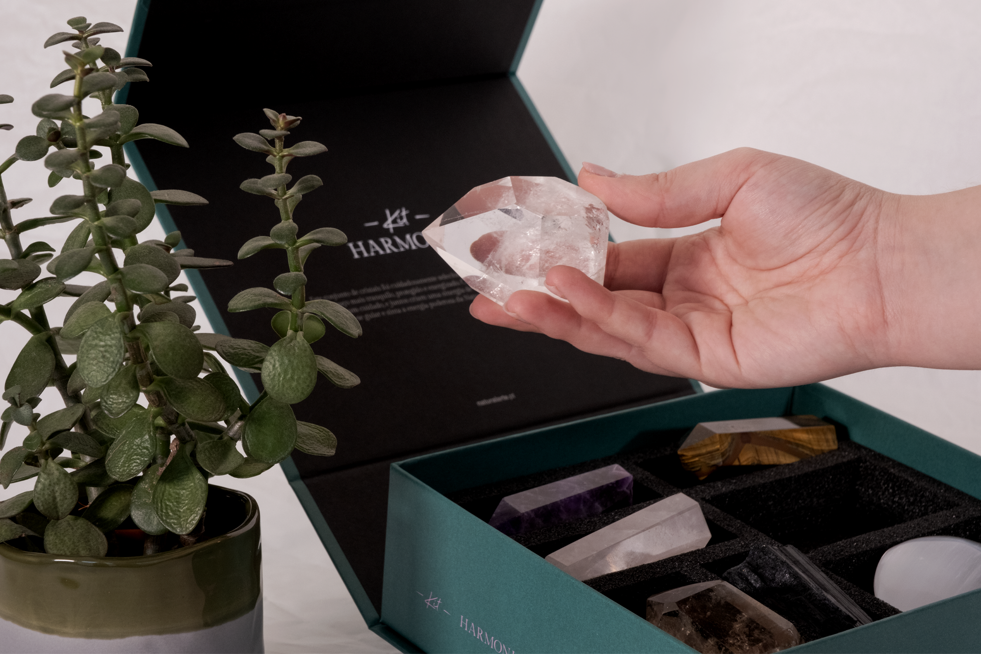 Mais do que um elemento decorativo, o Kit Harmonia é uma ferramenta prática de harmonização. Ao adquirir o seu, receberá um QR Code exclusivo, que lhe dará acesso a instruções personalizadas sobre a disposição de cada cristal no espaço, de acordo com os princípios do Feng Shui.